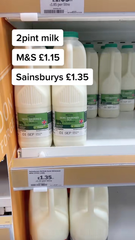 Two pint milk cartons were cheaper in M&S by 20p. (Picture: Jam Press)