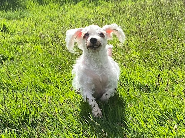 The white Maltese poodle cross had been neglected by his former owner and was then living as a stray.