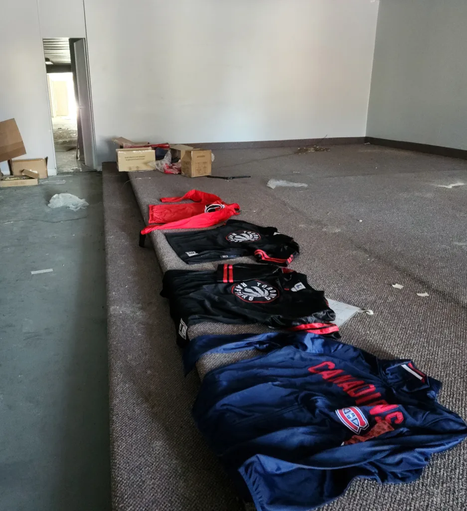 Many of the clothes including branded items from NHL and NBA are still new in their original wrapping.