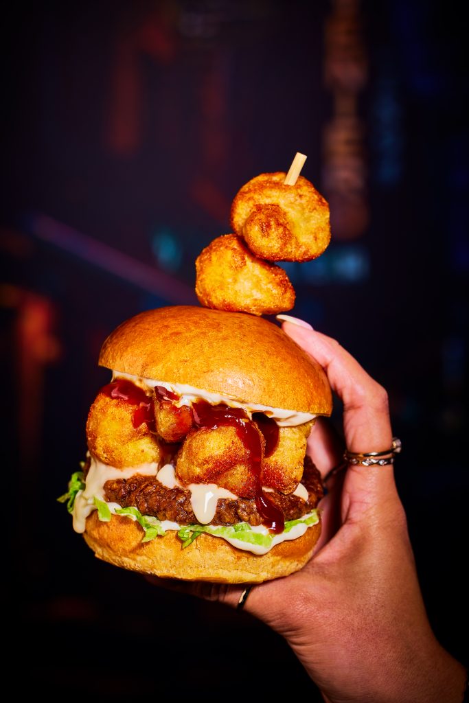 The vegan CENTRAL PERK – A plant-powered patty loaded with their crispy cauli bites.