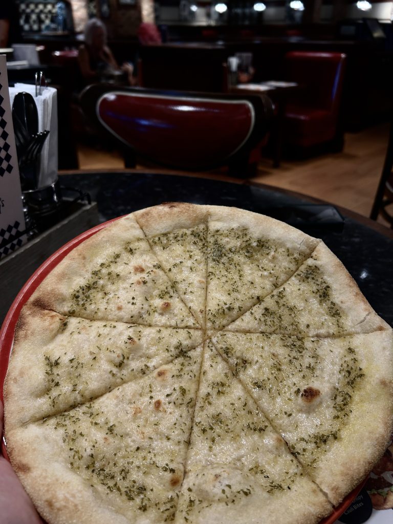 The bread was absolutely delectable: buttery and soft on top, crispy on the bottom, and glazed in garlic.