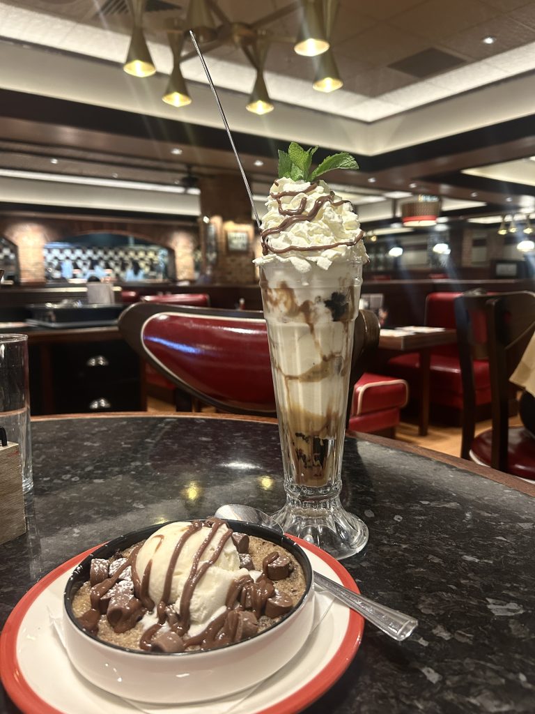 I’m usually not a sundae person, but this won me over: warm, chewy brownie bites, chunks of chocolate, ice cream, and whipped cream… what’s not to love?
