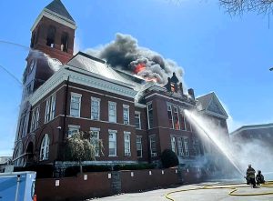 Historic courthouse left badly damaged after huge fire rips through the landmark building in Georgia – forcing evacuations as flames